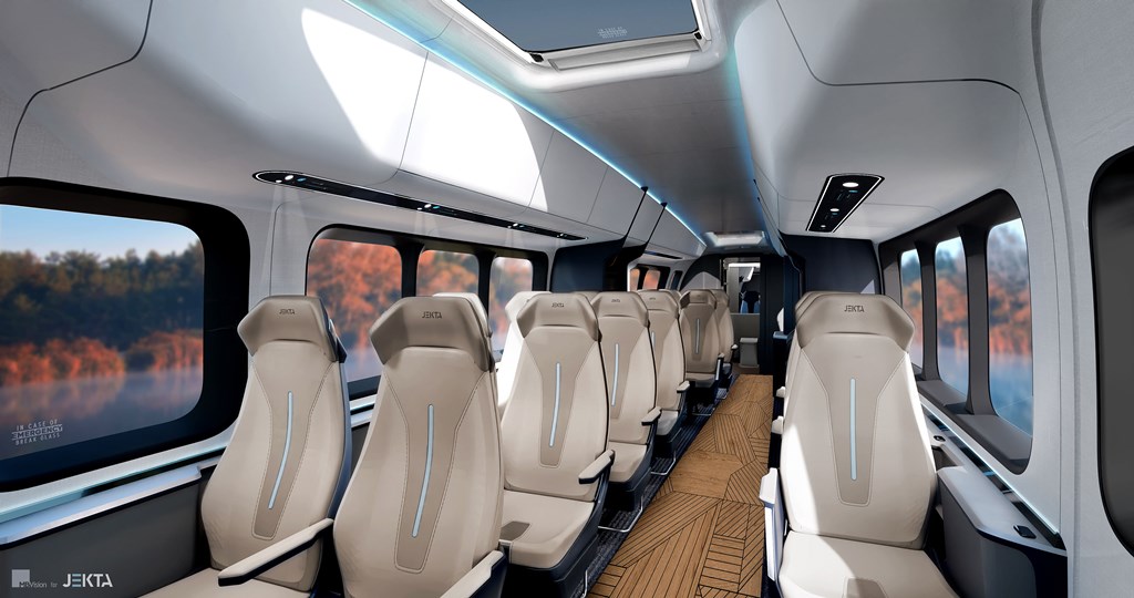 Se incorpora conectividad, lo que permite a los pasajeros y la tripulación ser productivos, entretenidos y estar en contacto, incluso en vuelos cortos. Con un ojo puesto en el peso y otro en la estética, Jekta trabaja con bibliotecas de materiales pioneras para integrar pantallas flexibles de próxima generación en la tapicería. El diseño interior también aumenta las ambiciones sostenibles del avión al incorporar el concepto de cero emisiones. Los materiales seleccionados son ecológicos y pueden reciclarse, pero no comprometen la calidad. “Creemos que expresan nuestra ambición de crear un estilo de viaje original y disruptivo dentro de un nuevo modo de transporte. “Hemos creado una cabina elegante para aerolíneas que vuelan varios tramos diariamente, que se adhiere a los principios de respeto con el medio ambiente interna y externamente.