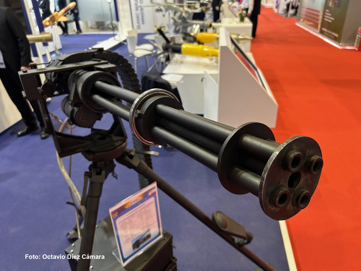 En el salón malayo DSA pudimos ver en detalle un nuevo diseño de ametralladora multitubo introducido en las Fuerzas Armadas de Irán en los últimos tiempos, diseño que se diferencia en algunos detalles de otras propuestas anteriores. Este concepto se derivaría el difundido Minigun surgido en Estados Unidos, diseño que el Islamic Revolutionary Guard Corps ya viene usando desde hace años, un montaje de seis tubos que se conoce como Moharram.