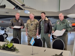 El ministro de Defensa de Argentina, Luis Petri, y su par danés, Troels Lund Poulsen, rubricaron una carta de intención para la adquisición de 24 F-16A/B Block 15, más otro Block 10, este último para usarlo en tareas de instrucción, para la Fuerza Aérea Argentina.