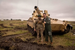 Al visitar las instalaciones del polígono de tiro del Regimiento de Caballería de Tanques 8 del Ejército Argentino, a poco más de cien kilómetros de la ciudad capital, el ministro de Defensa de Argentina, Luis Petri, observó demostraciones prácticas en el terreno de maniobras y los disparos de...