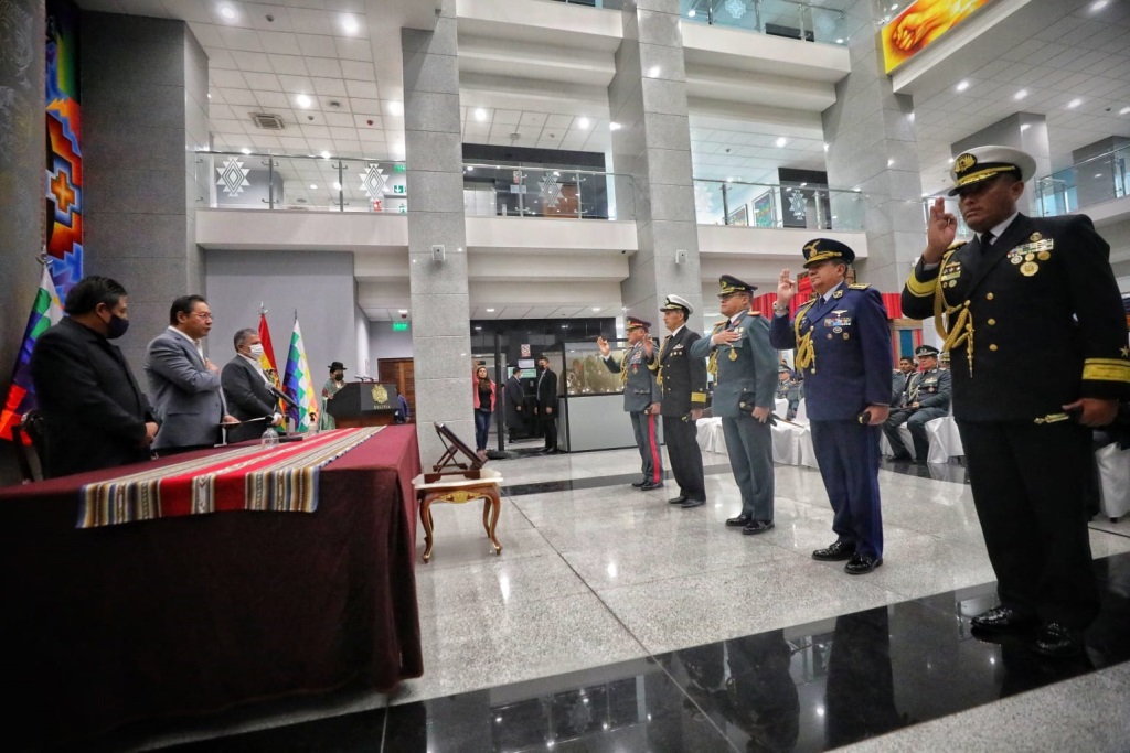 En ese marco, el presidente de Bolivia, Luis Arce Catacora, posesionó al nuevo Alto Mando Militar en la “Casa Grande del Pueblo” con la presencia del vicepresidente, David Choquehuanca y del ministro de Defensa, Edmundo Novillo Aguilar.