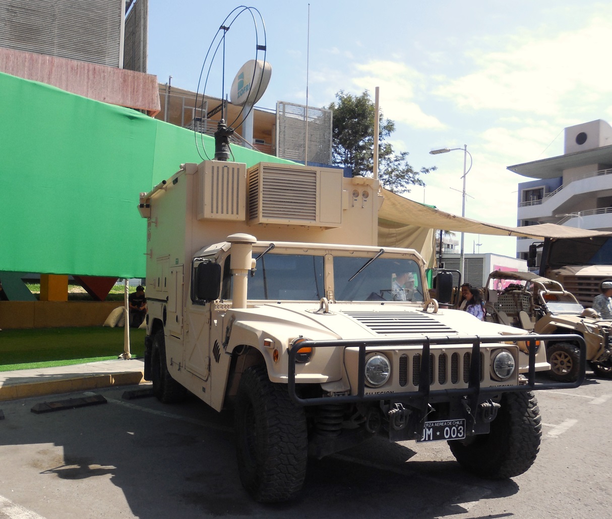 Se pudo ver así la pieza de artillería Oerlikon GDF-007 de 35mm del Grupo Defensa Antiaérea N°24, un vehículo todo terreno Humvee M-1152 con Shelter para comunicación con aeronaves y unidad repetidora, además de varios equipos de comunicaciones, un camión Mercedes Benz Zetros 2733 6X6 con una grúa articulada y un vehículo 4x4 Quad Polaris MRZR D2, todo estos medios eran del Grupo de Telecomunicaciones y Detección N° 31.
