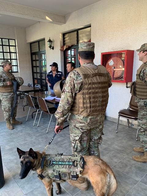 Regimiento Policía Militar del Ejército de Chile custodiando un centro de acopio de Ayuda humanitaria.