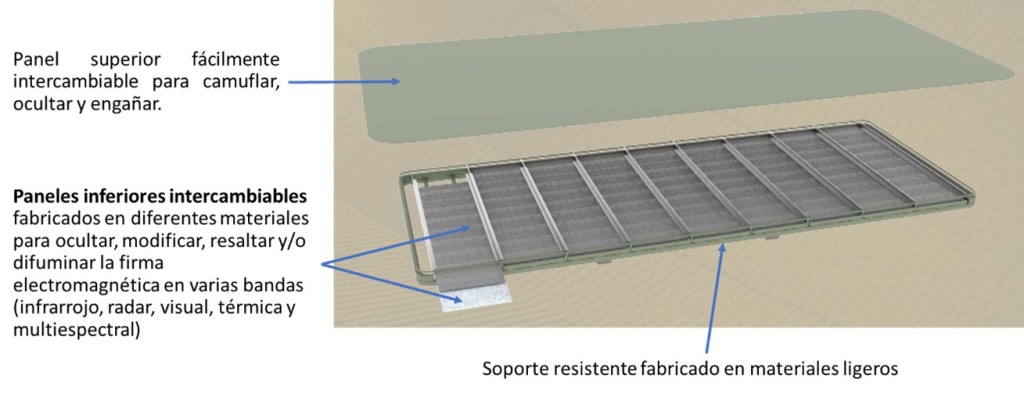 - Al cubrir nuestros activos militares (ya sea un vehículo, un polvorín avanzado o un puesto de mando) con un panel superior, estamos evitando la adquisición de la firma electromagnética de dichos elementos. Asimismo, estamos ocultando la verdadera firma electromagnética.