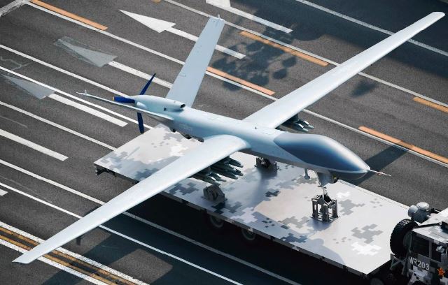 foto: En un gran desfile que tuvo lugar en Beijing en 2019 se mostraron sistemas tan avanzados como este UAV de combate inspirado en el “Predator” de Estados Unidos (foto Ministerio de Defensa de China).