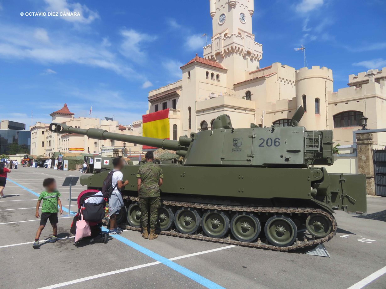 El primero era su potente obús autopropulsado M109A5 un material que ha llamado poderosamente -nunca mejor dicho- la atención de los visitantes por ser blindado, por su tren de rodaje oruga y por incluir un vistoso, y renovado hace poco, cañón de 155/39 milímetros que con las municiones más recientes le permite hacer fuegos precisos a distancias del orden de 30 kilómetros.