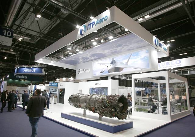 Además, se expone el motor T700 de GE, uno de los motores que mantiene ITP Aero. El T700 propulsa el helicóptero Black Hawk y Apache.