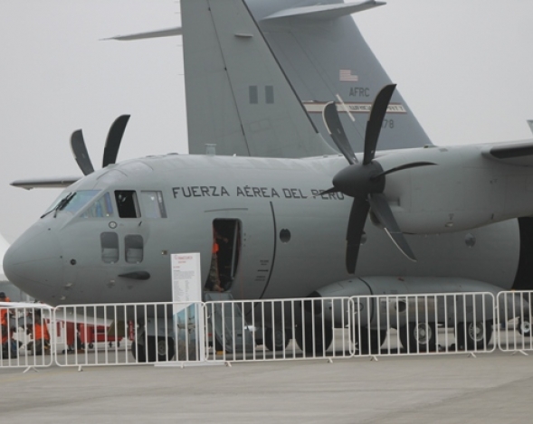 El Servicio de Mantenimiento (SEMAN) de la Fuerza Aerea del Peru, desde su stand en el Pabellon A de FIDAE, promociona sus capacidades de reparación y mantenimiento, tanto de aeronaves civiles como militares, y servicios asociados, asi como su programa de coproducción de los KT-1P Torito con...