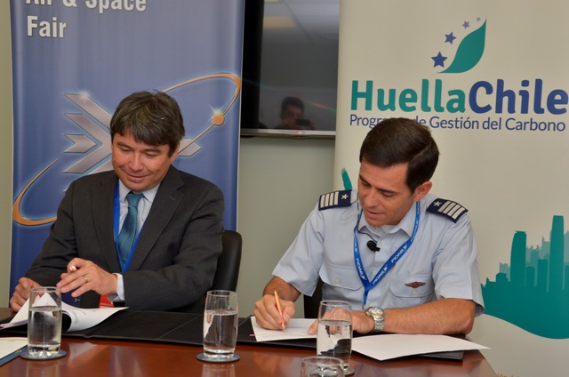El jueves 31 de marzo, en una ceremonia que contó con la participación del Subsecretario del Ministerio del Medio Ambiente, Marcelo Mena, y el Director Ejecutivo de FIDAE, Coronel de Aviación Fernando Silva, se llevó a cabo la firma de un acuerdo donde la muestra nacional se comprometió a implementar el Programa de Reducción de Emisiones de Gases Efecto Invernadero (GEI).