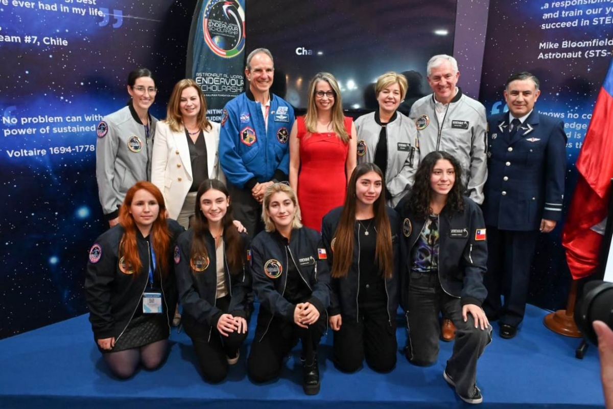 Bloomfield confirmó la importancia de la beca Endeavour, pues conecta a los jóvenes con el interés mundial por el espacio y fortalece los lazos de colaboración entre países. Para finalizar, Tom Kallman y las autoridades antes mencionadas, entregaron a las cuatro jóvenes chilenas y a su profesora guía, la indumentaria y escarapela correspondiente a su próxima misión.