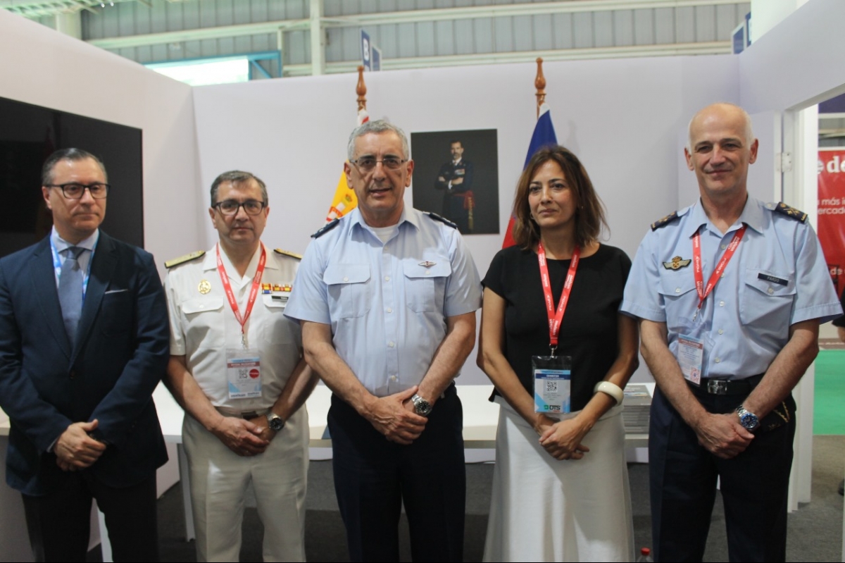 Foto: De izquierda a derecha: Cesar Ramos, Director General de TEDAE, Contralmirante José Antonio Toro, Subdirector General de Relaciones Internacionalesde la DGAM, Comandante en Jefe de la Fuerza Aérea de Chile, General del Aire Hugo Rodríguez, Eva Cervera, Directora de Grupo Edefa, y el Teniente General José Luis Pardo, Jefe del Mando de Apoyo Logístico del Ejército del Aire y del Espacio.