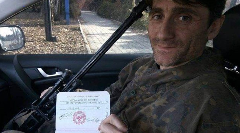 Dejan Beric mostrando su recién adquirido pasaporte de la República Popular de Donetsk