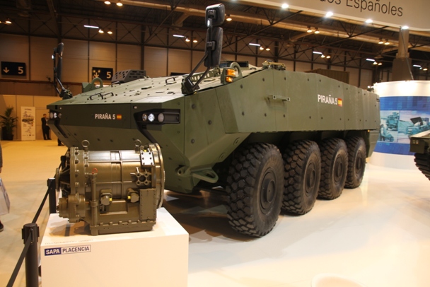 En este punto la empresa pone también el acento en la garantía que ofrecería durante el largo ciclo de vida técnico. En este sentido los responsables de la firma nos recuerdan que en los últimos sesenta años han producido, intervenido y/o modernizado, la mayoría de los vehículos blindados con los que ha contado el ET. Así mismo, en el stand de GDSBS se presentaban las transmisiones de la empresa SAPA-Placencia, que diseñó el modelo SG850 que se instala en los Vehículos de Combate e Infantería (VCI) Pizarro de la 2ª fase, otro de los proyectos del ET en marcha, cuya responsabilidad asumió Santa Bárbara Sistemas. (Julio Maíz)