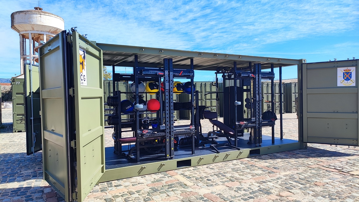Así Grupo Contact, que acumulaba quince años de experiencia en el suministro de material de gimnasio a las Fuerzas Armadas combinó su conocimiento de estas necesidades para dar forma a un contenedor que pudiera ser desplegado por los medios convencionales y operado incluso en un buque.