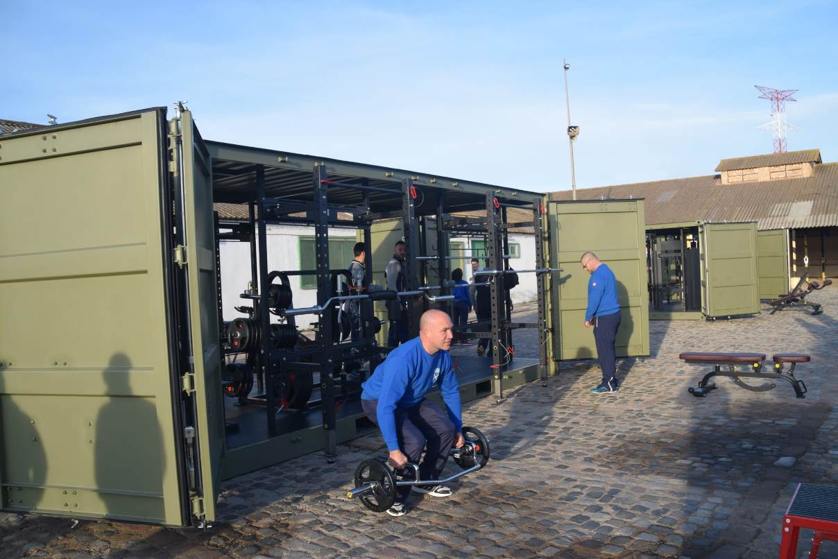 Las tropas desplegadas en misiones fuera de sus bases deben seguir con su entrenamiento diario aunque no siempre disponen de las instalaciones y los medios adecuados para ello. Pensando en esta necesidad una empresa española diseñó un gimnasio desplegable dentro de un elemento de alta movilidad como es un contenedor de transporte.
