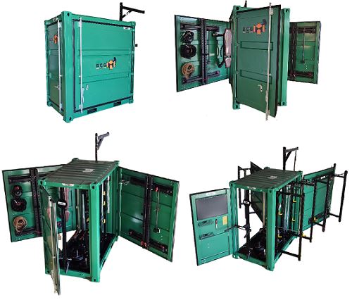 Estos boxes sobre contenedor son extremadamente robustos, fabricados en acero y combinan una elevada movilidad al estar certificados por el Convenio Internacional sobre la seguridad de los contenedores (CSC) y al mismo tiempo han supuesto un reto de ingeniería para albergar de forma segura en su interior el mayor número de elementos listos para su empleo.