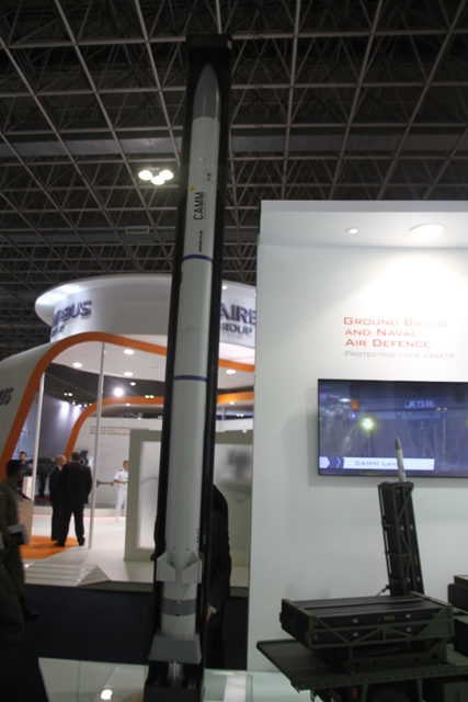 El otro gran productos estrella del stand de MBDA es el misil antiaéreo modular CAMM. Hablamos de un misil muy polivalente que ya está en servicio en su versión terrestre y cuya versión naval, que en Reino Unido es designada Sea Ceptor, y que estará previsiblemente en servicio en 2016, tras realizar su primer disparo guiado en 2014, y obtener su cualificación final el año en curso.Puede ser operada actualmente desde baterías terrestres situadas sobre camiones, aunque sobre todo lo que interesa en LAAD es su versión naval, que sustituirá en la Royal Navy al VL Seawolf, en las fragatas del Tipo 23, que todavía utilizan éste último y el que equipe, en este vital campo, a las de nueva generación, del Tipo 26.