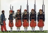 Las figuras de esta lámina lucen uno de los uniformes más característicos de su tiempo, mil veces reproducido por su vistosidad e imitado por Ejércitos de todo el mundo, desde el británico al pontificio, desde el carlista al confederado. El traje a la turca pretendía vestir a los soldados...