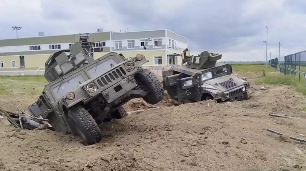 Dos vehículos Humvee destruidos durante una de las ultimas incursiones en la región de Belgorod.