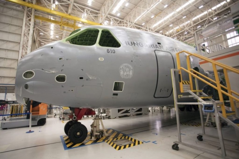 Embraer avanza en la producción del primer KC-390 Millennium para la Fuerza Aérea de Hungría que debería estar terminado a finales de este año. Algunas imágenes del avión en la fábrica de Gavião Peixoto, en São Paulo, muestran la evolución del montaje de las semialas en el fuselaje de la aeronave, con ambas estructuras ya pintadas con los colores de dicha Fuerza Aérea.