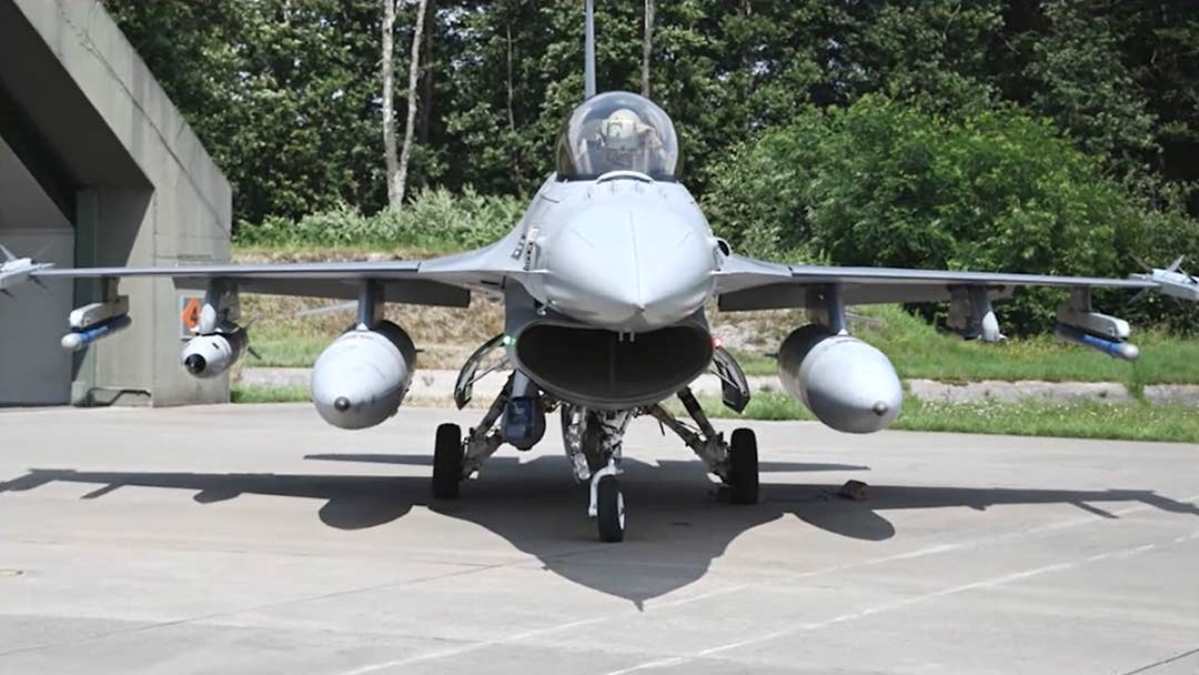 Un F-16 de la KLu portando una bomba termonucleares B61-12, bajo su ala derecha, a partir de ahora el rol lo asumirá el F-35. (foto KLu)