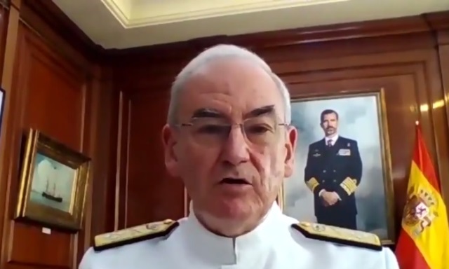 El Almirante Teodoro López Calderón, Jefe de Estado Mayor de la Armada (AEMA) durante su intervención en el coloquio online (captura video Executive Forum)