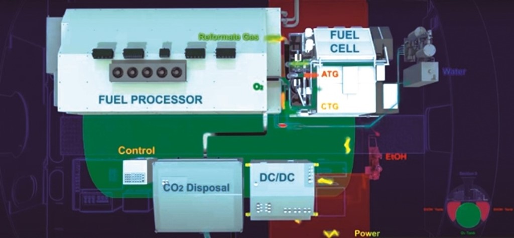El núcleo de esta tecnología es el llamado procesador o reformador, que se encarga de generar la corriente rica en hidrógeno a partir de etanol o, en el caso español, bioetanol. El Ministerio de Defensa apostó por el bioetanol por la capacidad nacional para producirlo y por la disponibilidad de las materias vegetales ricas en azúcares, almidón o celulosa de los que se obtiene y no depender así de la producción internacional de etanol.