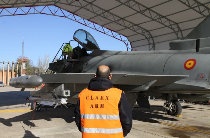 Tampoco se debería obviar la labor desarrollada por el Centro Logístico de Armamento y Experimentación (CLAEX) del Ejército del Aire, que lleva años trabajando en la implementación de las capacidades de los Eurofighter españoles. Con el bagaje de experiencia obtenido en las sucesivas modernizaciones de los EF-18 y otros aparatos ha podido acometer una primera modernización u Operational Flight Program (OFP), de la Trancha 1, que, además de aumentar sus capacidades, abre el camino para participar en la actualización de la flota. El trabajo del CLAEX también se ha centrado en los ensayos del sistema, destacando la labor en la integración del misil aire-aire IRIS-T. La última puesta al día en el aparato se remonta al año pasado, centrándose en el software de Electronic Warfare (EW), o guerra electrónica, solicitada con vistas a la participación en el Red Flag, que se materializó a primeros de año, permitiendo una presentación más eficaz en las pantallas multifunción de lo captado por los sensores. Igualmente, el CLAEX ha introducido mejoras en el software, que, aunque menores, mejoran sustancialmente los cálculos de la envolvente del armamento aire-aire.