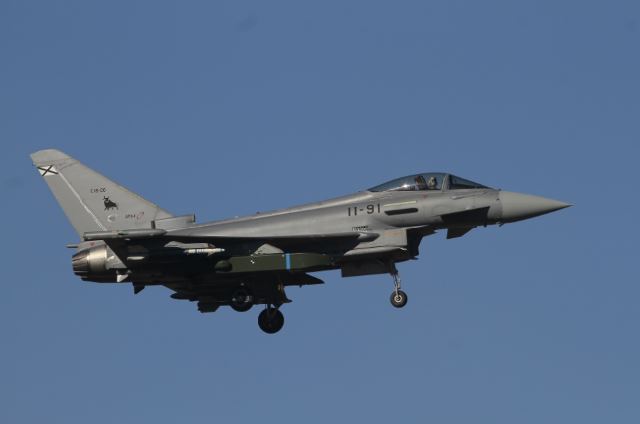 Foto: Uno de los “Eurofighter” biplazas del Ala 11 (foto Julio Maíz).