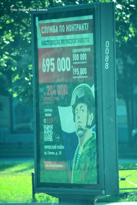 Por las ciudades rusas puede verse una notable profusión de anuncios que, con aspectos económicos, incentivan el alistamiento. (Octavio Díez Cámara)