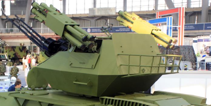 foto: Se puede visualizar una torreta CIDET similar a esta HS M09 BOV-3, con lanzadores dúplex de M67 o SA-14 MANPADS, en posesión de la FAES, y exhibidos en septiembre del 2018 (foto Wikipedia/ Srđan Popović).