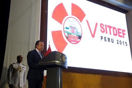 (defensa.com)El Ministro de Defensa del Perú, Jakke Valakivi Álvarez, acompañado por el Ministro del Interior, José Luis Pérez Guadalupe, y del Comandante General del Ejercito, General de Ejercito Ronald Hurtado Jiménez, inauguro el V Salón de Tecnologías para la Defensa y Prevención de Desastres - SITDEF 2015- que se realiza en la sede del Cuartel General del Ejercito en Lima (Perú). En su discurso de orden, Hurtado Jiménez indico que “nuestras Fuerzas Armadas y Policía Nacional se encuentran en una etapa de modernización y que gracias a la decisión política de nuestro Presidente de la República: Ollanta Humala Tasso, se está llevando a cabo inversiones en equipamiento para ser empleados en aire, mar y tierra, que nos permitirá garantizar la seguridad y contribuir al desarrollo socio-económico del país”.