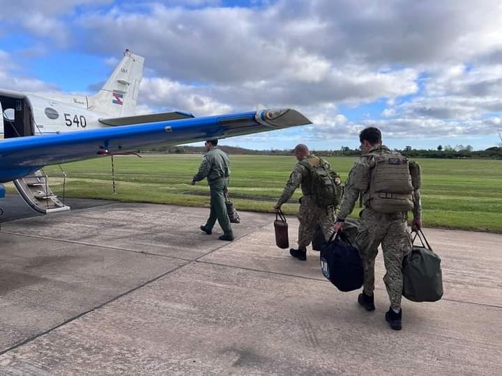 El Beechcraft B-65 "Queen Air" FAU 540, la aeronave multimotor decana de la Fuerza Aérea Uruguaya, llegó desde Carrasco y Rivera a la Base Aérea de Santa María ( BASM) en Río Grande do Sul transportando 8 efectivos PARA-SAR (Paracaidista de Búsqueda y Rescate) de la Sección de Operaciones y Entrenamiento de Rescate de la Fuerza Aérea (SOER), en auxilio de los inundados riograndenses. Se trata de personal que se caracteriza por formarse como rescatistas paracaidistas y buzos.